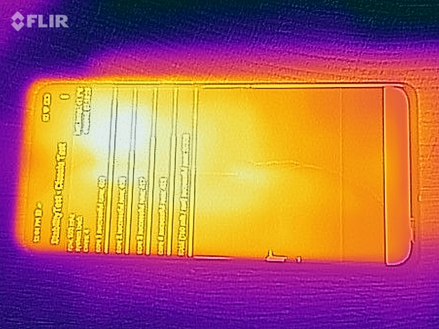 (+) Auf der Unterseite messen wir eine maximalen Wert von 38.9 °C (im Vergleich zum Durchschnitt von 34 °C).