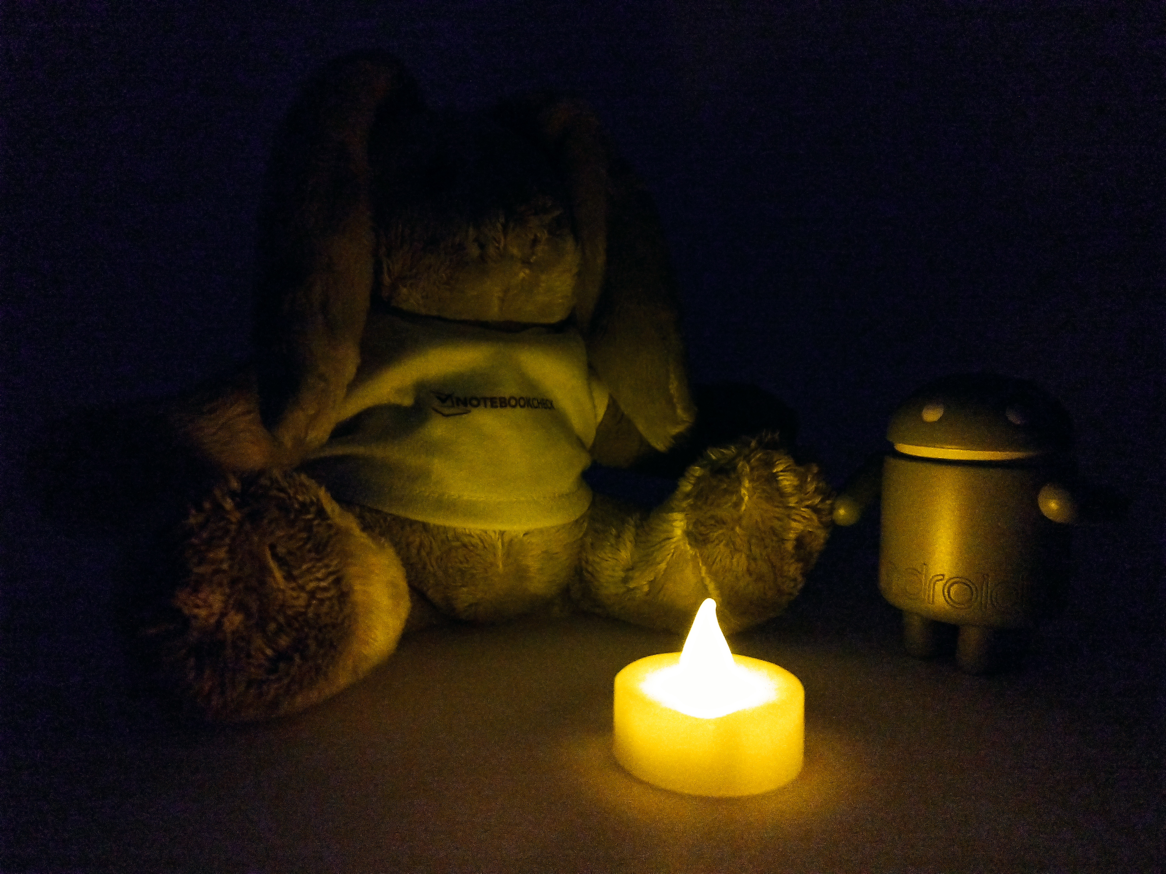 Nachtaufnahmen sind jedoch nicht die Stärke der Kamera. Das Test-Setup mit dem Notebookcheck-Maskottchen lichtet sie nur düster und unscharf ab. Zudem steht sie trotz ihrer Pixelreserven mit Zoom-Aufnahmen auf Kriegsfuß. Im Testfoto verschwimmen Bilddetails bereits bei 5-facher Vergrößerung zu einem Pixelbrei.