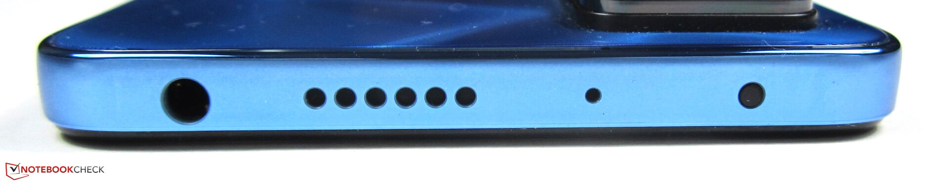 Der OTG-fähige USB-Port des Redmi Note 11 Pro 5G arbeitet mit USB-2.0-Tempo. An der Unterseite sitzt auch einer der beiden Lautsprecher – der zweite an der Oberseite – sowie der SIM-Slot. In den passen entweder zwei Nano-SIM-Karten oder eine Nano-SIM-Karte und eine microSD-Karte Platz.