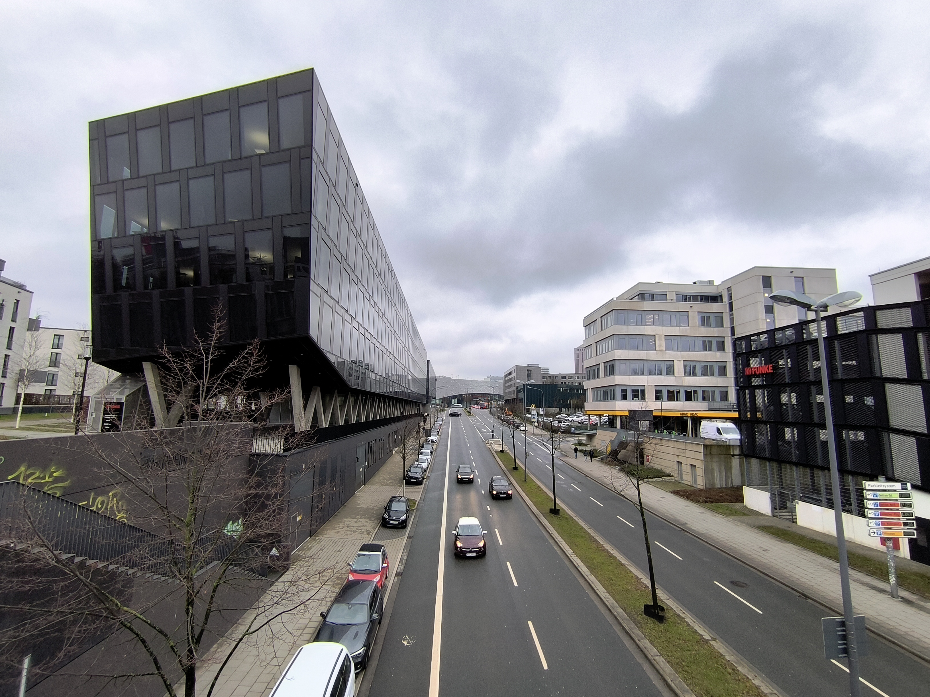 Tageslicht-Aufnahme 1Tageslicht-Aufnahme 2Ultraweitwinkel5-facher ZoomLowlight-AufnahmeIm Testlabor zeigt die Hauptkamera, dass sie Farben bei optimalen Lichtbedingungen sehr akkurat einfangen kann (maximales Delta-E von 8,05). Auch den Testchart bildet sie dann sehr scharf ab. Bei 1 Lux Restlicht bleibt der Testchart zwar erkennbar, wird aber nur sehr dunkel dargestellt.