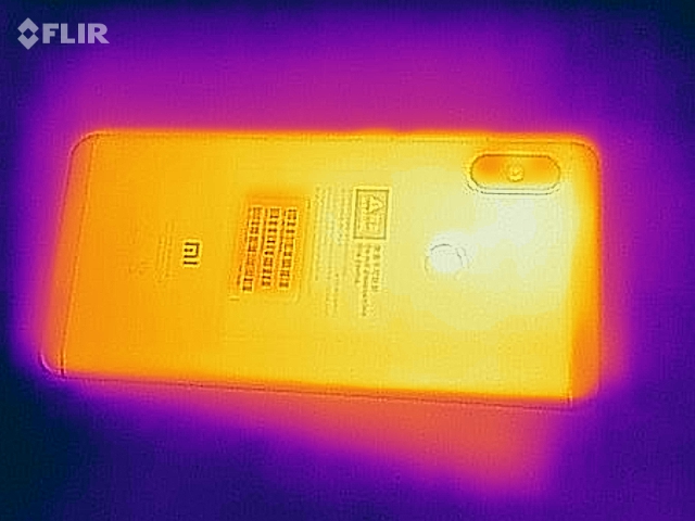 Mit maximal 38,4 °C ist die Erwärmung an der Vorderseite des Gerätes spürbar, aber nicht unangenehm. Selbst an sehr heißen Tagen nach längerem Gebrauch, wenn man das Gerät in die Hosentasche steckt, ist die Erwärmung noch erträglich und das Smartphone kühlt auch relativ schnell wieder ab. An der Rückseite messen wir maximal 36,8 °C. Wird kaum Leistung abgerufen, bleibt die Temperatur im gesamten Gerät unter 30 °C, es gibt damit keine spürbare Erwärmung.