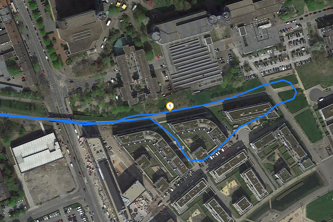 Um die Ortungsgenauigkeit unseres Testgerätes in der Praxis einschätzen zu können, zeichnen wir parallel eine Strecke zu Vergleichszwecken mit dem GPS-Fahrradcomputer Garmin Edge 500 und dem Smartphone auf. Nur 20 Meter liegen zwischen dem günstigen Mittelklassegerät und dem Profi-Navigationsgerät am Ende der gut 9 Kilometer langen Teststrecke.