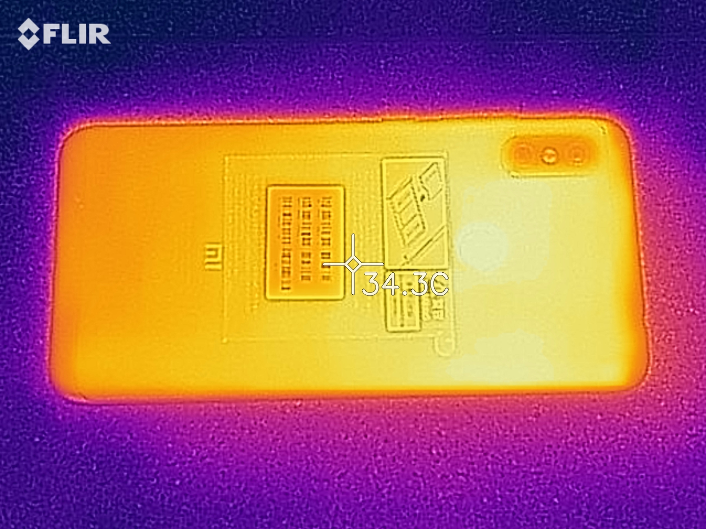 Sowohl die Rück- als auch die Vorderseite erwärmen sich unter Last kaum. Während im Test auf der Vorderseite maximal knapp 35 °C gemessen werden, weist die Rückseite eine geringe maximale Oberflächentemperatur von knapp 33 °C auf. Die Temperaturentwicklung des Redmi Note 6 Pro ist im Alltag unproblematisch und nicht störend.