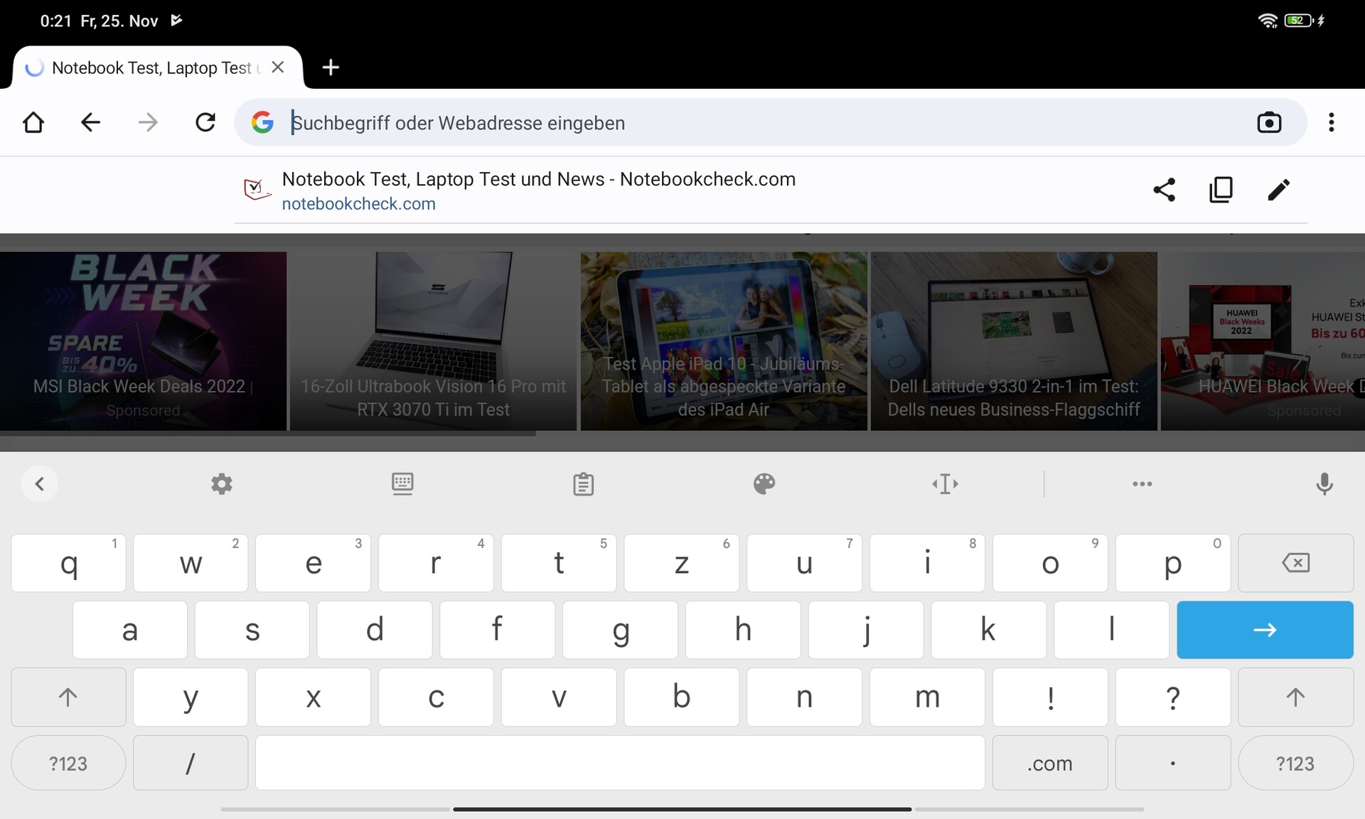 Der 8000 mAh große Akku des Redmi Tab wird über das im Lieferumfang enthaltene 22,5-Watt-Netzteil aufgeladen. Davon kann das Tablet allerdings nur maximal 18 Watt ziehen. Im Test dauert es 2:37 Stunden, bis die leere Batterie wieder bei 100 Prozent Füllstand angekommen ist.