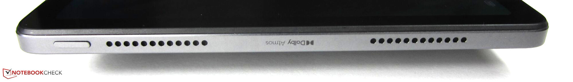Das Redmi Pad wird über die USB-C-2.0-Schnittstelle mit Strom und Daten betankt. Mangels 3,5-mm-Klinkenbuchse dient der USB-OTG-fähige Port auch zum Anschluss von Audiogeräten. Aus seinen 4 Lautsprechern, die sich paarweise auf die kurzen Seiten verteilen, erzeugt das Redmi Pad einen Surround-Sound und unterstützt Dolby Atmos.