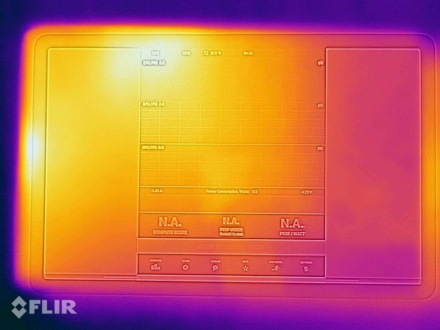 (+) Die maximale Temperatur auf der Oberseite ist 35 °C. Im Vergleich liegt der Klassendurchschnitt bei 33.7 °C (von 20.7 bis 53.2 °C für die Klasse Tablet).