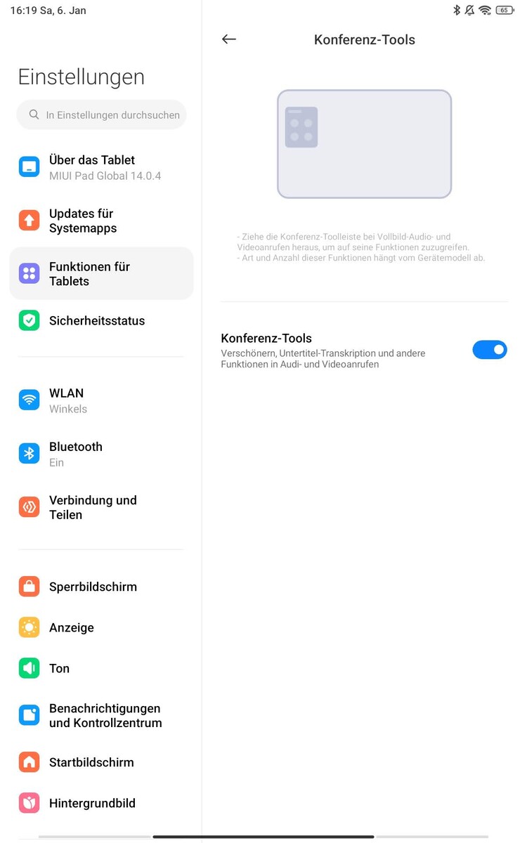 Die Software erlaubt es, Apps als schwebende Fenster darzustellen. Diese können in der Größe angepasst und auf dem Bildschirm verschoben werden. Bestimmte Apps können im horizontalen Modus auch nebeneinander angezeigt werden, die Auswahl ist allerdings sehr gering. Zudem bietet Xiaomi ein Konferenztool für Video-Anrufe. Damit sollen in der Vollbilddarstellung Funktionen geändert werden können, etwa die Untertitel-Transkription.