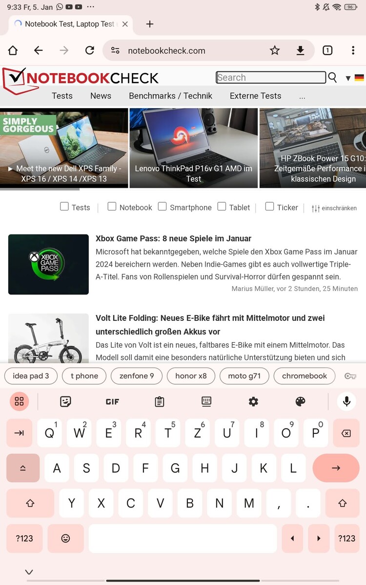 Xiaomi setzt beim Redmi Pad SE ab Werk auf Googles GBoard-Tastatur. Damit sind Eingaben im Hoch- wie im Querformat gut und ohne Vertipper möglich. Die Gleiteigenschaften des Displays sind gut, bis zu zehn Eingaben werden gleichzeitig auch in Randbereichen sicher erkannt.