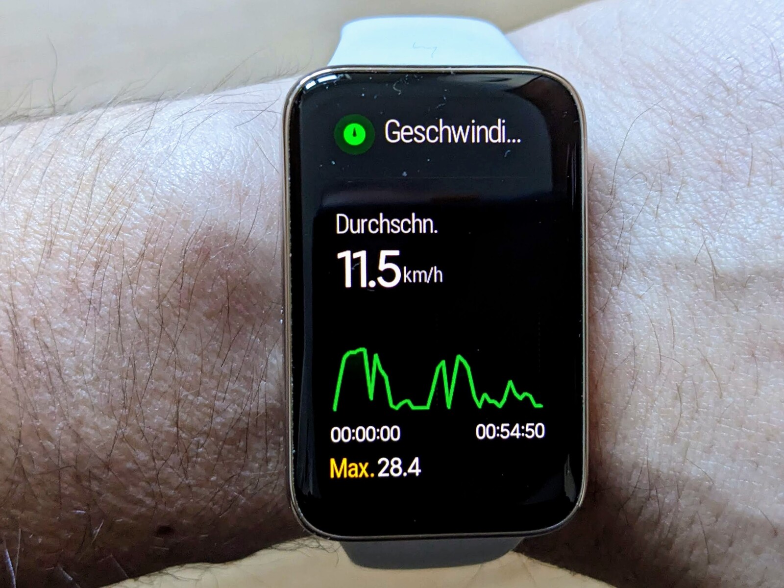 Das Smart Band 7 Pro hat eine integrierte Satellitenanbindung, unterstützt werden alle gängigen Systeme: GPS, Glonass, BeiDou, QZSS und Galileo. Ist eine Satellitenverbindung hergestellt, bleibt sie im Test stabil. Während des Trainings wird die Verbindungsqualität mit Balken visualisiert. Bis die Verbindung steht, vergehen jedoch auch im Freien einige Sekunden, da sind andere Smartwatches schneller.