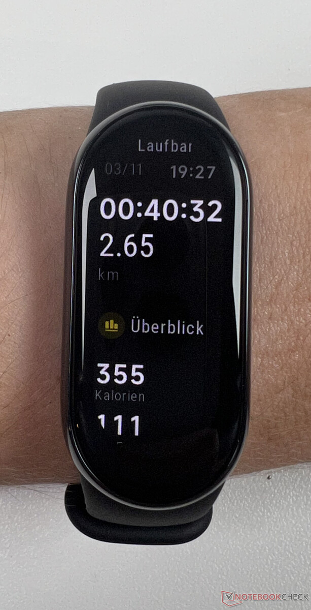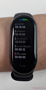 Das Display des Smart Band 8 von Xiaomi misst, wie schon beim Vorgänger Xiaomi Smart Band 7, 1,62 Zoll in der Diagonale. Der Hersteller verbaut ein AMOLED-Panel, das mit 490 x 192 Pixeln auflöst. Die Helligkeit gibt der Hersteller mit bis zu 600 cd/m² an, die das Wearable in unserem Test sogar um bis zu 10 Prozent überbieten konnte. Dies ist unter den unten aufgeführten Vergleichsmodellen der Topwert und reicht aus, um das Display selbst bei Sonneneinstrahlung gut ablesen zu können, auch wenn die Glasabdeckung spiegelt. Auch eine neue automatische Helligkeitsregulierung gibt es.