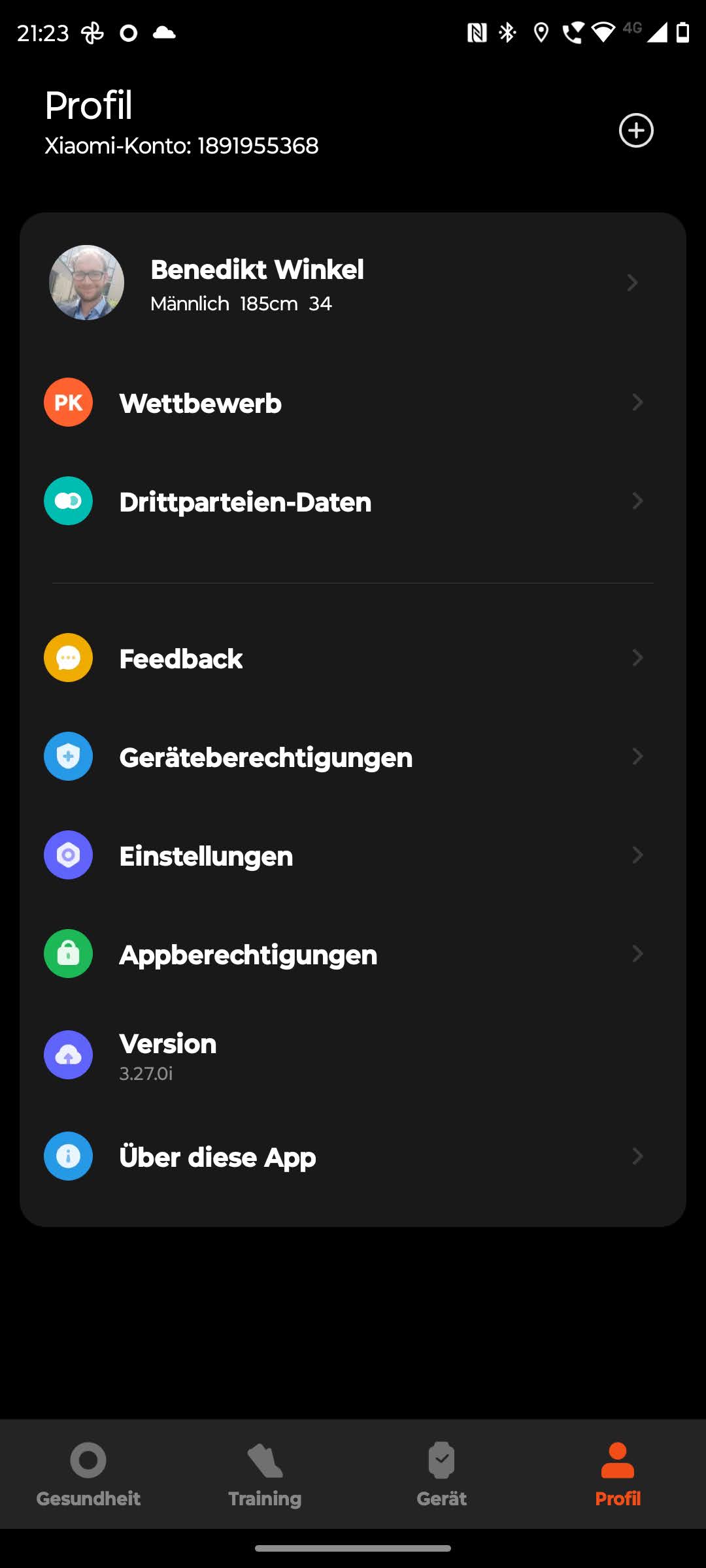 "Training" zeigt vergangenen Trainings aufgelistet nach Sportarten an. Außerdem können Trainings direkt über die App gestartet werden. In "Profil" wird das hinterlegte Xiaomi-Konto mit den entsprechenden Einstellungen angezeigt. Hier können auch Apps von Drittanbietern verknüpft werden, etwa Strava, Suunto, Apple Health oder Google Fit.