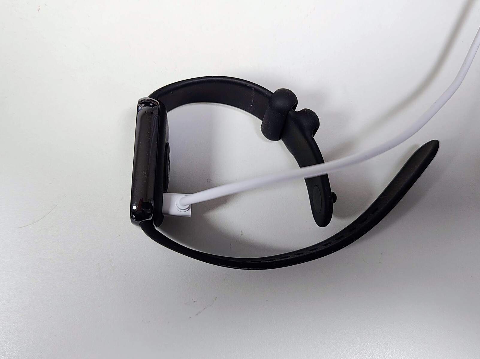 Geladen wird das Smart Band 8 Pro über ein Kabel, das magnetisch auf der Unterseite gehalten wird. In 20 Minuten ist das Band von 10 auf 40 Prozent geladen, eine vollständige Ladung dauert etwa 70 Minuten. Ein Netzteil liegt dem Tracker nicht bei.