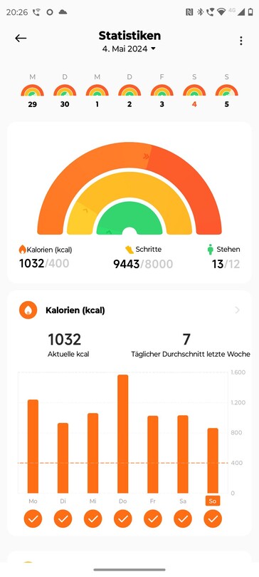 Aktivitätsziele - Smart Band 8 Pro berechnet Durchschnittswerte