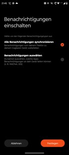 Sind die Geräte gekoppelt, müssen dem Fitnesstracker und der Mi-App Berechtigungen erteilt werden, etwa für das Übermitteln von Benachrichtigungen. Danach startet ein Tutorial in der Smartphone-App, das wird allerdings auf englisch angezeigt, nachdem die Installation komplett auf deutsch möglich war. Ein Tutorial auf der Uhr selbst gibt es nicht. Zuletzt werden die persönlichen Ziele für die tägliche Bewegung festgelegt.