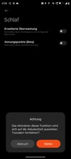 Wird das erweiterte Schlaftracking aktiviert, misst der Tracker in der Nacht den Puls und die Blutsauerstoffsättigung. Außerdem vergibt die Software Atmungspunkte und gibt Tipps, wie die Atmung im Schlaf verbessert werden kann.