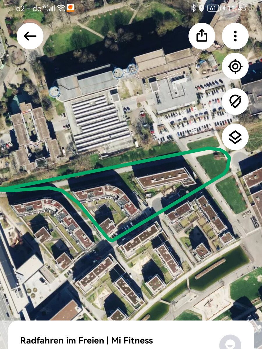 Bei einer Vergleichsfahrt mit der Garmin Venu 2 wird allerdings deutlich, dass die gemessene Strecke merklich abweicht, während die Garmin am Ende der Runde eine Strecke von 9,89 Kilometern angibt, hat die Xiaomi nur 9,41 Kilometer gemessen, eine Abweichung von fast fünf Prozent.