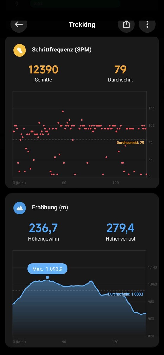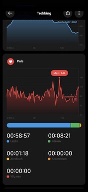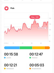 Zudem fallen bei der Xiaomi einzelne Spitzen bei der Geschwindigkeitsmessung auf. Neben vielen plausiblen Werten gab es bei fast allen Trainings einzelne Spitzen mit unmöglichen Werten, etwa einer Spitzengeschwindigkrit beim Wandern von 58,9 km/h. Das GPS hinterlässt somit einen zwiespältigen Eindruck. Eine App für Navigation bietet die Xiaomi Watch S1 leider nicht. Auch ein Export oder Import von GPS-Daten ist nicht möglich.