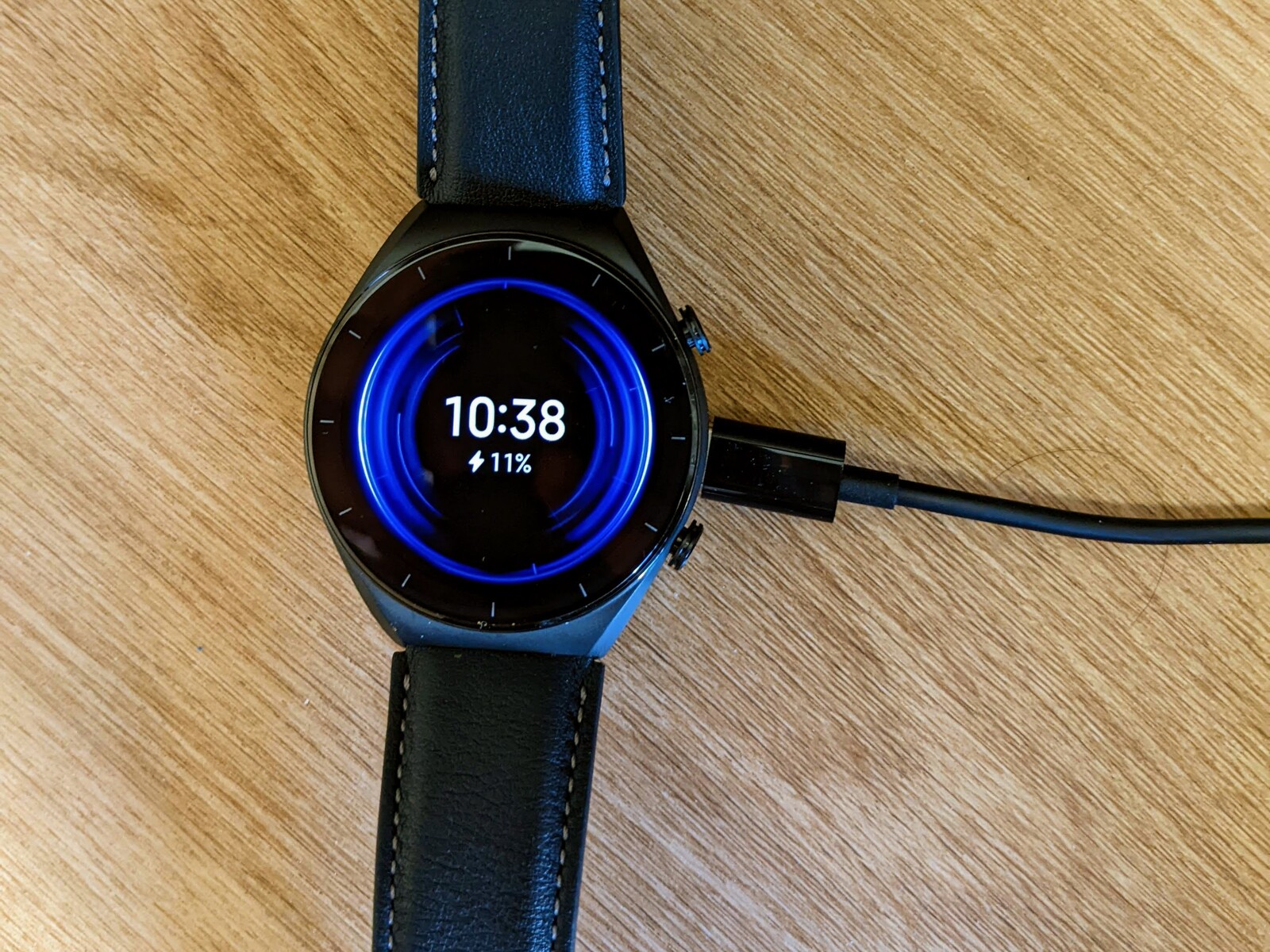 Geladen wird die Smartwatch drahtlos, sie nutzt den Qi-Standard. Auch Reverse-Wireless-Charging ist damit möglich. Die Ladezeiten variierten im Testzeitraum. Bei der schnellsten Ladung schaffte die Xiaomi-Watch in einer Stunde eine Steigerung von 10 auf 90 Prozent. Eine Ladung von 10 auf 100 Prozent dauer noch 10 Minuten Länger. Das Always-On-Display schaltet sich während des Ladens nach einigen Minuten ab. Das USB-Ladekabel ist mit 40 Zentimetern leider ziemlich kurz geraten, kann aber getauscht werden, ein Netzteil ist nicht im Lieferumfang.