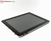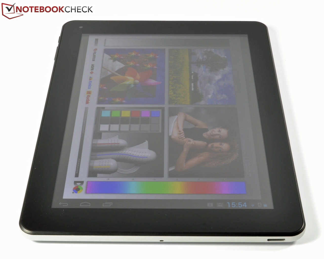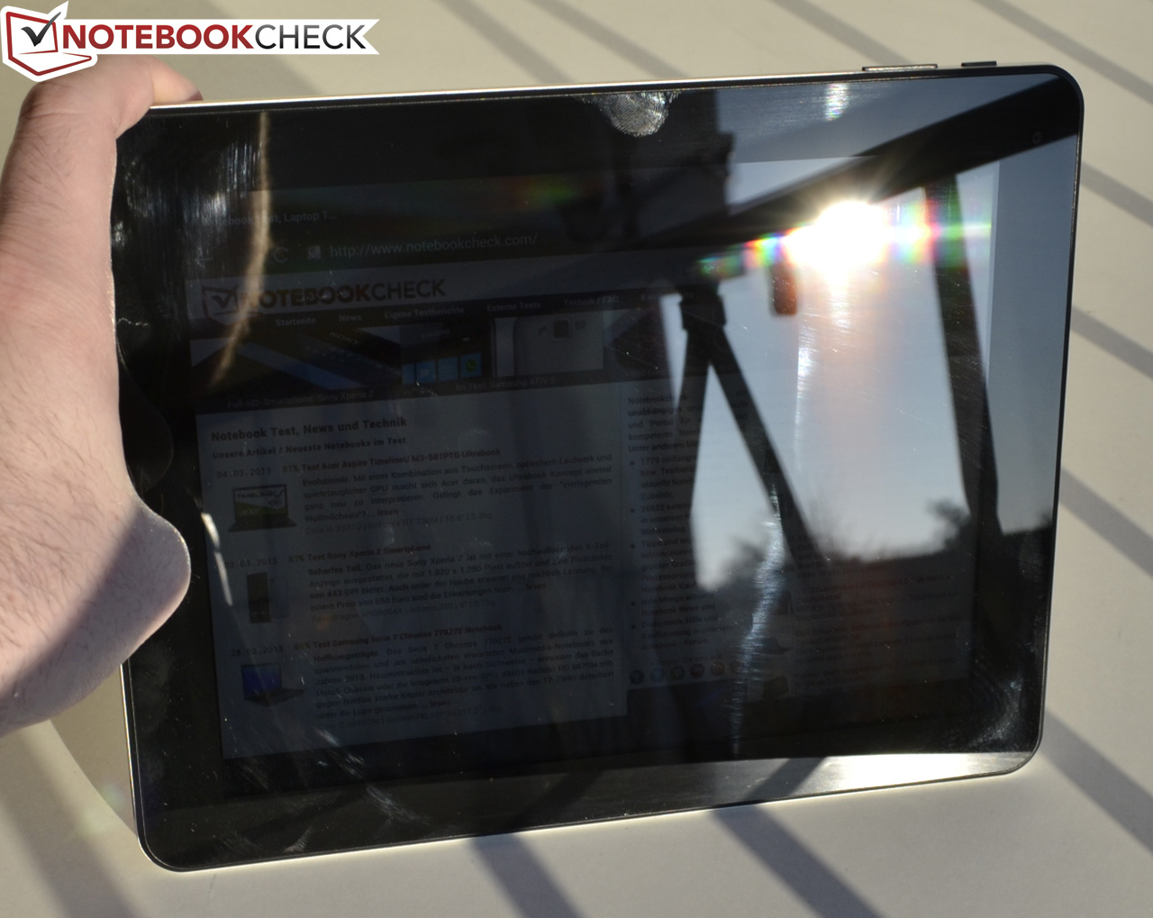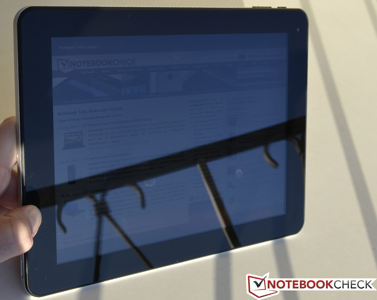 Woran das liegt? Nun, am ansprechend designten Äußeren und den stabilen Edel-Materialien Glas und Aluminium bestimmt nicht. Auch am vergleichsweise ordentlichen Klang der Stereo-Lautsprecher nicht. Schon eher am brillanten, blickwinkelstabilen IPS-Display mit einer hohen Auflösung von 2.048 x 1.536 Pixeln. Das ist zwar reaktionsschnell und kann durchaus Spaß machen, die Helligkeit ist jedoch zu niedrig, was sich besonders im Freien bemerkbar macht und die Mobilität stark einschränkt. Zudem ist der HD-Modus nur halbgar, da einige Anwendungen damit nicht funktionieren. Hier haben die Ingenieure schlicht bei der Anpassung geschlampt.