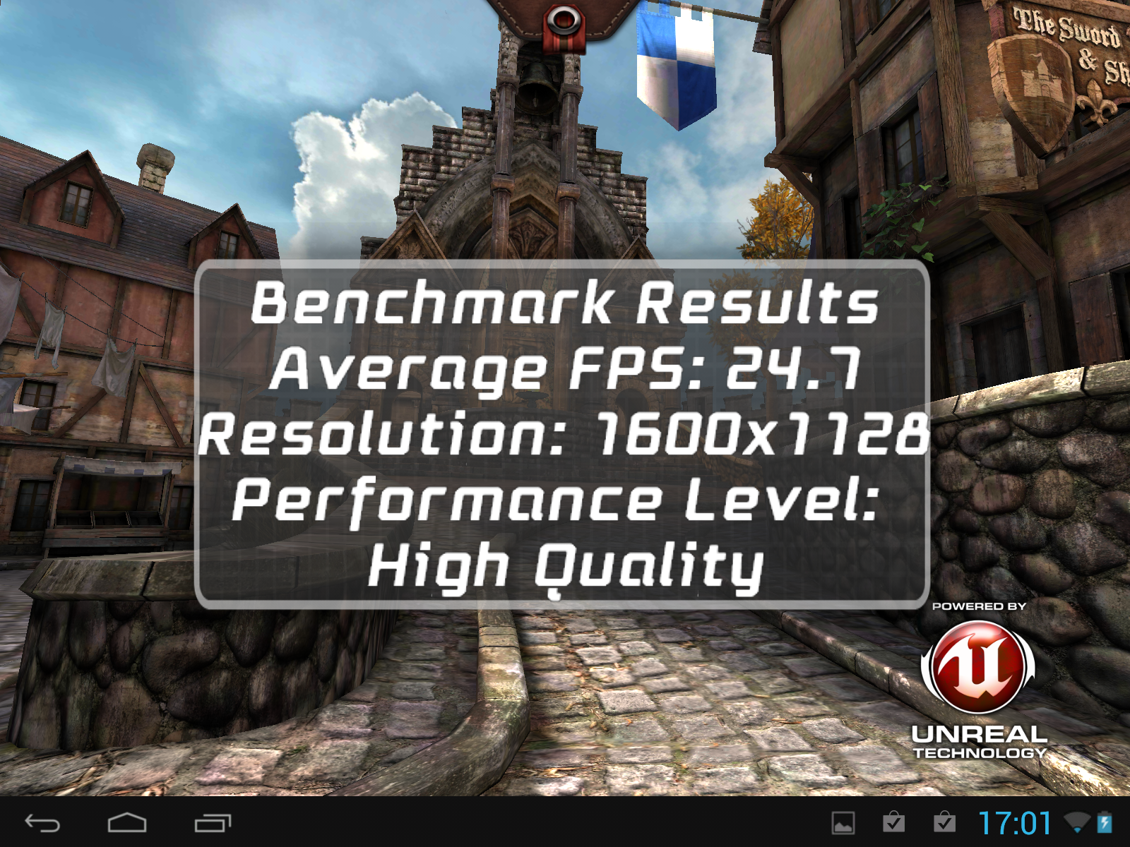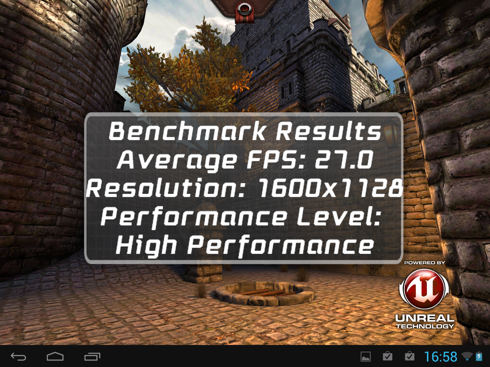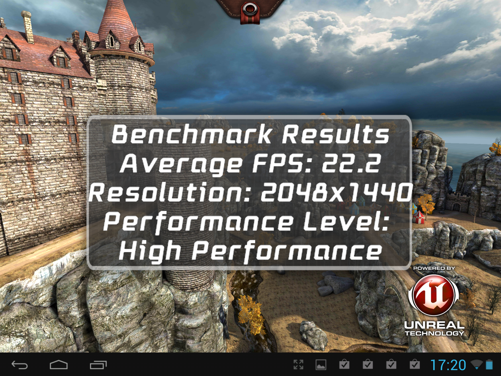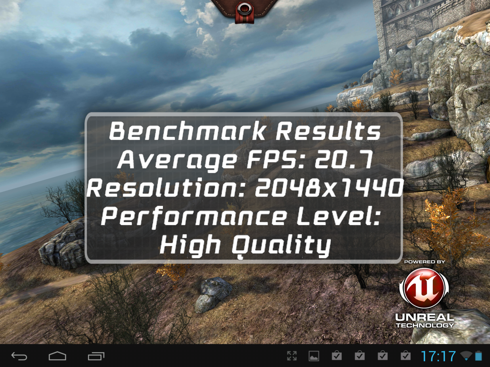 Bei einigen Benchmarks schnitt das Xoro PAD 9718DR im HD-Modus teils deutlich schlechter ab, speziell im NenaMark2 Benchmark wurde dies offensichtlich. Renderte die Grafikeinheit des Testgerätes die Testsequenz im "normalen Modus" noch mit flotten 51,2 FPS, so brach die Framerate im HD-Modus auf 38 FPS ein. Ein ganz ähnliches Bild also wie beim Archos 97 Titanium HD. Im Smartbench 2012 fiel der Unterschied mit etwa 5 Prozent sehr gering aus. Dennoch schnitt das Tablet auch im HD-Modus mit 3.009 Punkten immer noch rund 20 bis 30 Prozent besser ab als die Mitbewerber. Den Grafikbenchmark Epic Citadel absolviert das Xoro Tablet im HD-Modus mit 22,2 FPS (High Performance) und 20,7 FPS (High Quality). Auch hier zeigt sich wieder die stärkere Performance im "Normal-Modus" mit 27,0 respektive 24,7 FPS.
