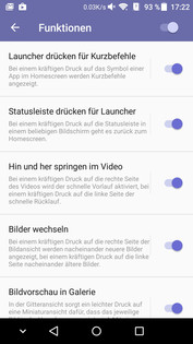 Wahlweise lässt sich das Smartphone auch mittels Trageerkennung, der Erkennung vertrauenswürdiger Geräte (per NFC oder Bluetooth) oder vertrauenswürdiger Standorte entsperrt halten. Wer eher auf die konventionelle Code-Eingabe setzt, freut sich dank Force Touch über komplexere Eingabemuster. Bei den sogenannten 3D-Passwörtern lassen sich Zahlen, Sonderzeichen und Buchstaben mit unterschiedlich starkem Druck kombinieren. Force Touch lässt sich auch für Shortcuts für Apps nutzen, so öffnen sich bei starkem Druck auf kompatibel Apps verschiedene Wahlmöglichkeiten. In Perfect Piano werden wiederum Töne lauter wiedergegeben bei stärkerem Druck. In der Video-Anwendung schließlich erzeugt starker Druck eine schnellere Spulgeschwindigkeit.