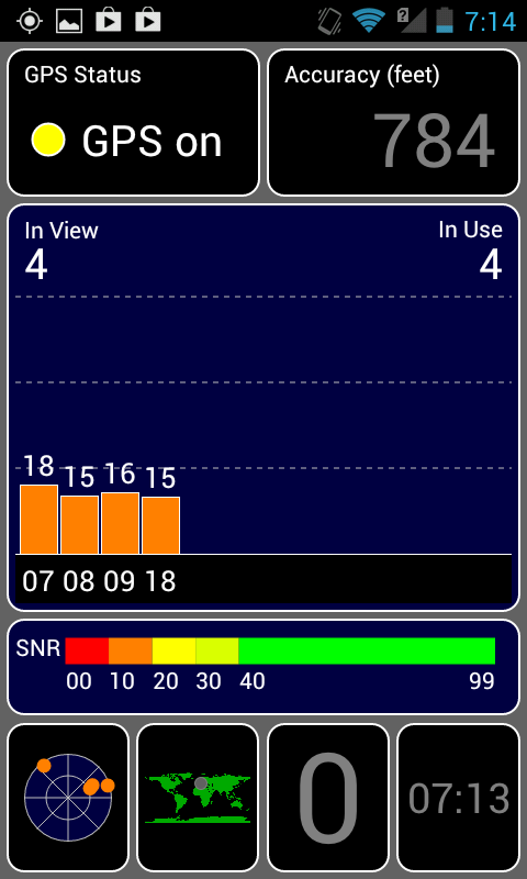 Auch A-GPS ist an Bord, das Modul findet im Freien sehr schnell genug Satelliten, um unseren Standort genau zu bestimmen. Im Inneren kann der Empfang dagegen nur kurzzeitig aufrecht erhalten werden: Dann sind zwar immer noch einige Satelliten in Reichweite, aber nicht genug, um die Positionsbestimmung durchzuführen.