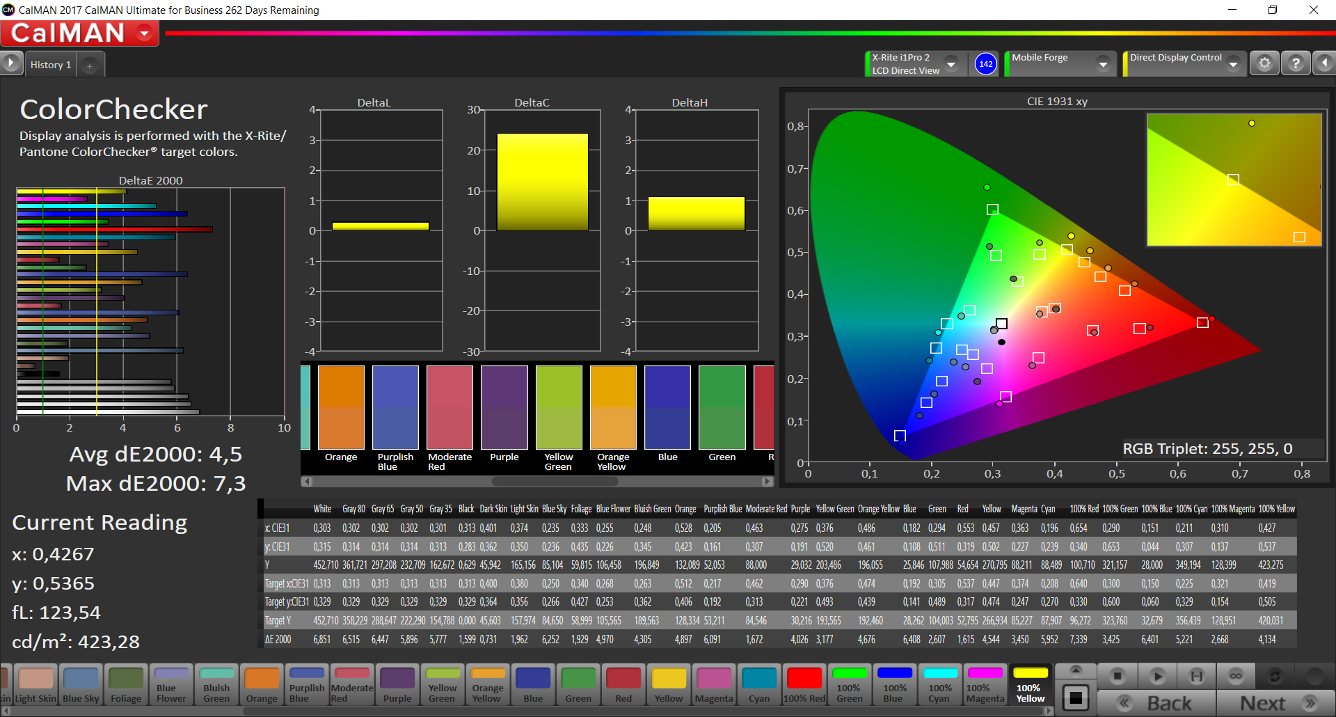 ΔE ColorChecker Calman: 4.5 | ∀{0.5-29.43 Ø4.78}