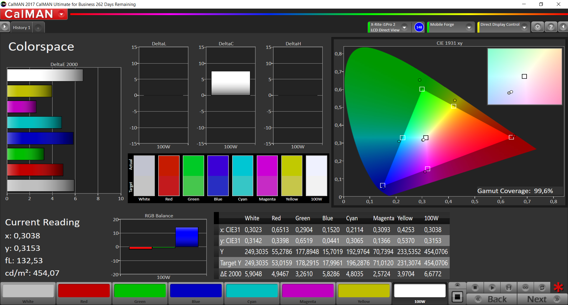 | Delta E Colorchecker * | 4.5 | 4 11% | 2 56% | 4.2 7% | 2.4 47% |