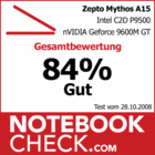 Ausgestattet mit Intel P9500 CPU und Geforce 9600M GT Grafikkarte von nVIDIA bietet das Zepto Mythos erstklassige Leistung sowohl für Standard-Anwendungen als auch für Leistungsfordernde Multimedia Applikationen bzw. Games. Bereits die Geforce 9600M GT Grafik bietet eine passable Performance bei aktuellen Spielen. Mit der alternativ Verfügbaren 9650M GT Grafikkarte sollte dann nochmals eine Leistungssteigerung möglich sein.
