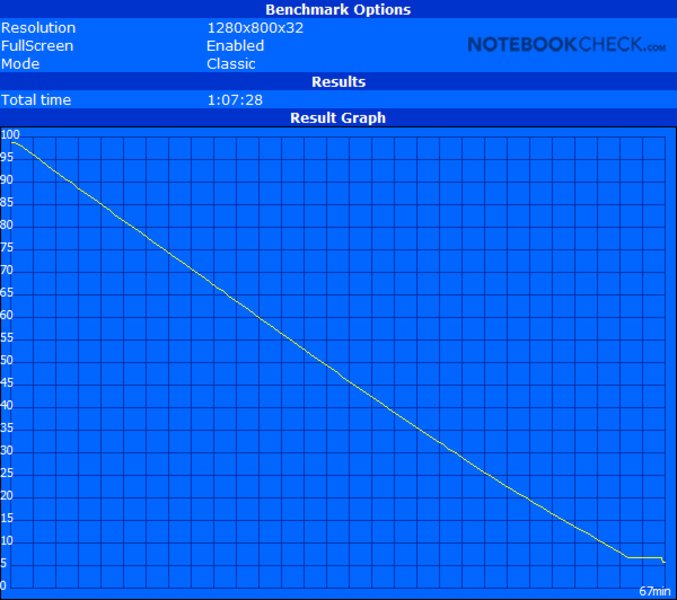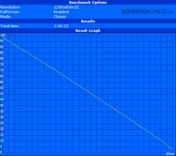 Als Standardakku ist beim Znote 3415W eine 6-zellige Batterie mit 53 Wattstunden dabei. Diese liefert dem Znote 3415W im Test mit Battery Eater „Reader's“ fast 2 Stunden 45 Minuten lang Strom. Beim „Classic“-Test geht dem Dänen erwartungsgemäß schon erheblich früher die Puste aus. Mehr als etwas über eine Stunde Laufzeit auf Akkustrom ist kaum drin. Das ist in Anbetracht der starken Kernkomponenten als „befriedigend“ zu werten und ganz auf Augenhöhe mit anderen Notebooks dieser Leistungsklasse.