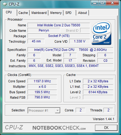 Wie eingangs beschrieben, ist unser Znote 3415W mit einem sehr flinken Zweikernprozessor von Intel ausgestattet. Der Core 2 Duo Mobile Prozessor T9500 ist mit 2,6 GHz getaktet und verfügt über 6 MByte Secondlevel-Cache sowie einen 800 MHz schnellen Front-Side-Bus (FSB). Die Rechenrakete legt in allen Benchmarks, Tests und auch bei der redaktionellen Arbeit ein atemberaubendes Tempo vor und lässt zu keinem Zeitpunkt auch nur den Ansatz von Leistungssorgen aufkommen.