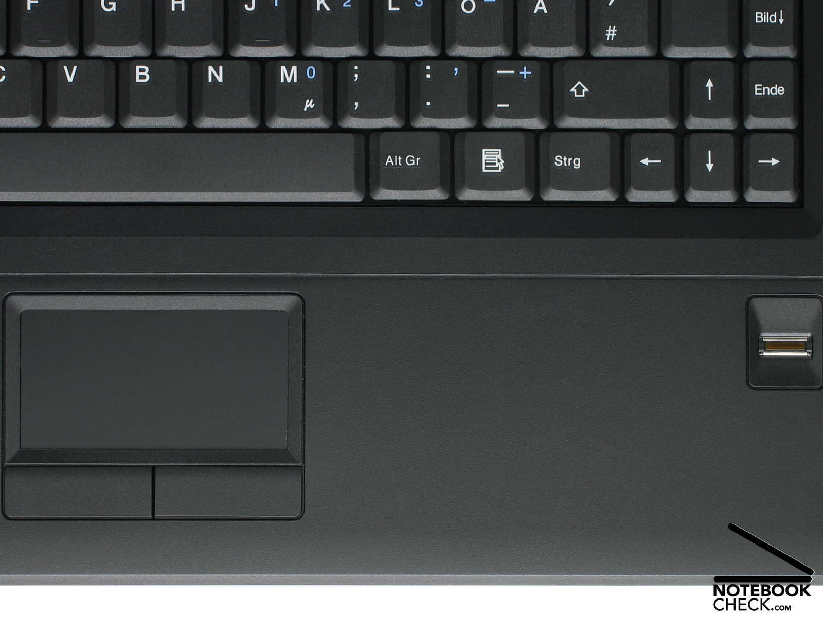 Als zentrales Eingabegerät kann der Anwender beim Znote 3415W eine mattschwarze Tastatur mit 87 Einzeltasten nutzen. Die Tastenköpfe erreichen mit 1,5 x 1,3 Zentimetern effektiver Betätigungsfläche zwar nicht ganz Desktopformat, dafür sitzen diese aber vergleichsweise fest auf der Unterkonstruktion. Tastenanschlag und Druckpunkt sind recht flach und straff – Geschmackssache. Die größeren Tasten wie „Enter“ und „Leer“ klappern aber vernehmlich. Anfänglich führt das fehlende klassische Tastenlayout zu so manchem Vertipper, da die linke „Fn“-Taste mit der „Steuerung“ vertauscht und die „Entfernen“-Taste nicht ganz rechts oben zu finden ist. Im Bereich der Tasten „9“ und „F10“ biegt sich die Tastatur beim Tippen zudem etwas durch.