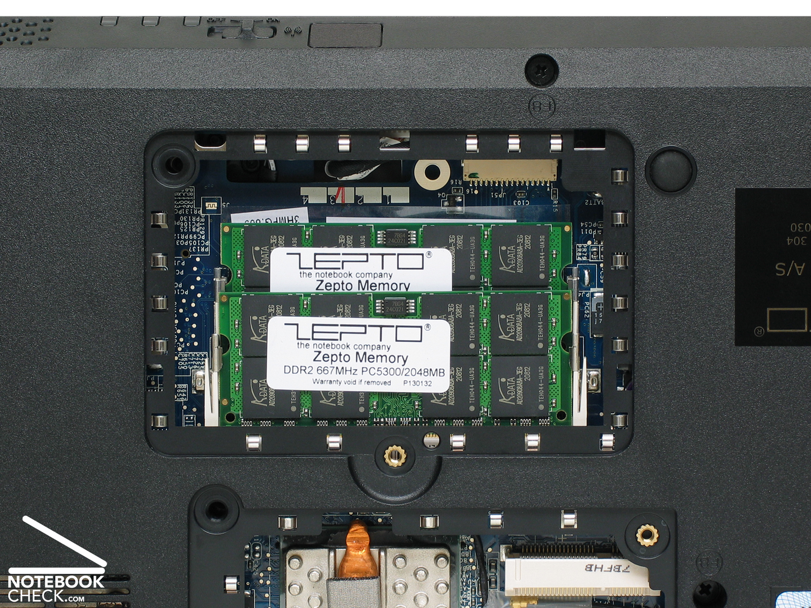 Dies gilt auch für die Arbeit mit dem nicht eben anspruchslosen Betriebssystem Windows Vista. Das Znote 3415W zieht auch mit Vista kernig durch und legt dabei ein sehr agiles Betriebsverhalten an den Tag. Beim Znote 3415W stecken in den zwei RAM-Slots an der Geräteunterseite zwei Speicherriegel der flotten Sorte DDRII-667. Die in unserem Testkandidaten verbauten PC5300-Module warten mit einer Kapazität von je 2 GByte, also insgesamt 4 GByte auf. Mit der Vista 32-Bit-Version werden davon effektiv aber nur 3 GByte genutzt. Fürs Znote 3415W gibts aber auch Vista in der 64-Bit-Ausführung.
