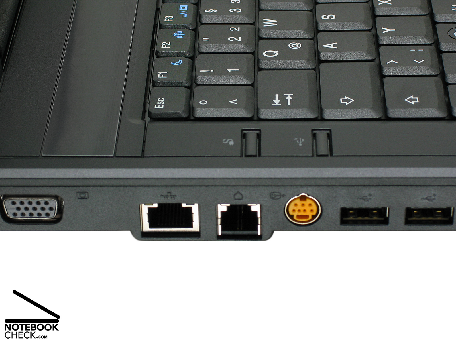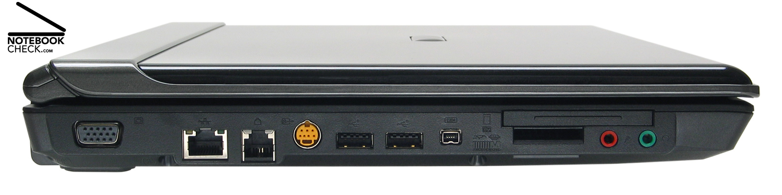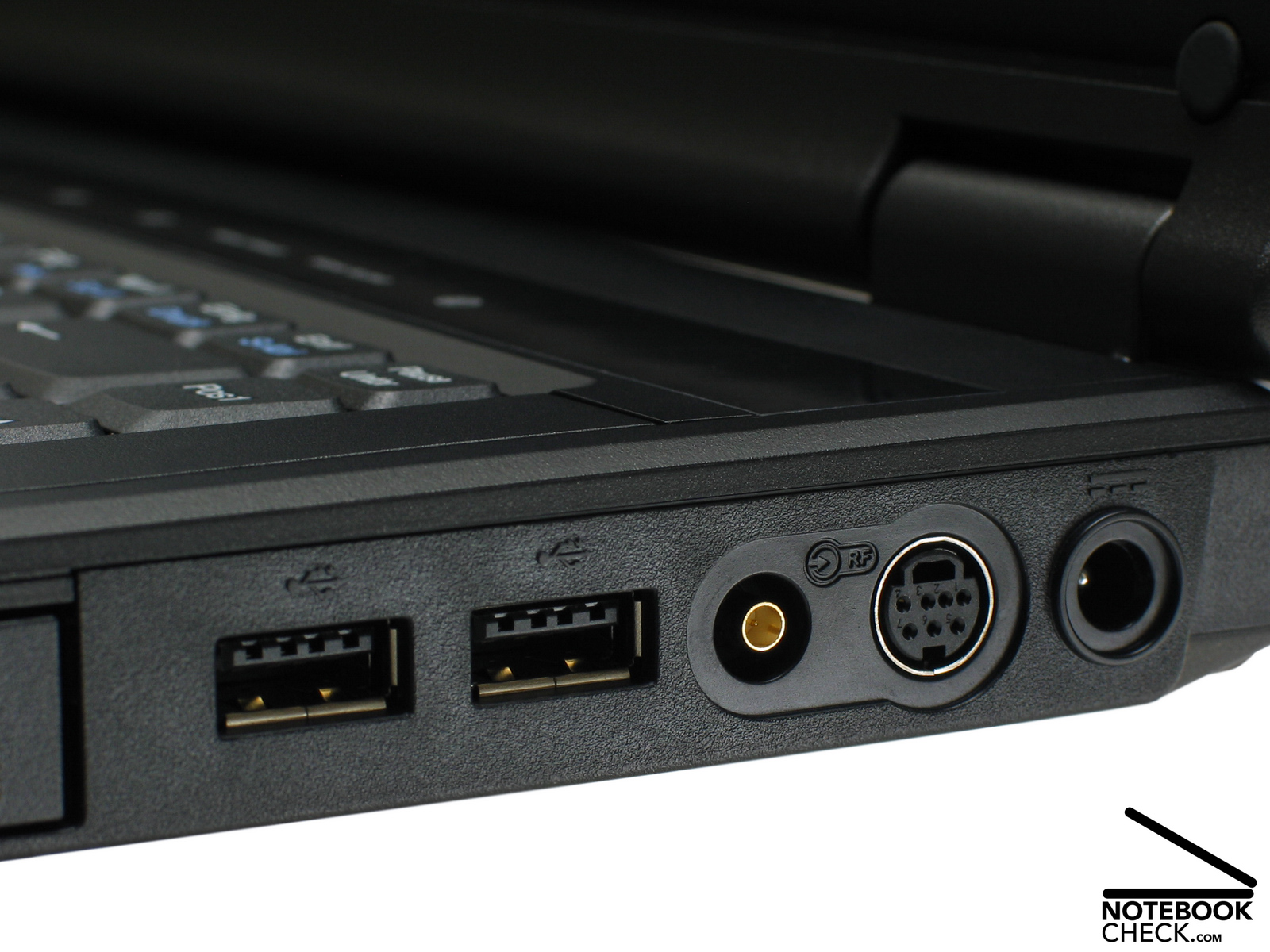 Auf Seite der Anschlüsse offeriert das Znote 3415W die, für multimediale 15,4-Zöller, typische Standardkost. Vier USB-2.0-Schnittstellen, Firewire (i.LINK, IEEE1394) sowie Sound-, S-Video- und VGA-Anschlüsse sind in dieser Klasse üblich. Die beiden USB.2.0-Buchsen an der linken Notebookseite sind als High-Power-Ports ausgeführt und können bei Bedarf mittels des Power-USB-Knopfes mehr Strom für Peripheriegeräte wie iPod und externe Festplatte (HDD) liefern. So soll man daran beispielsweise auch den iPod bei ausgeschaltetem Notebook aufladen können.