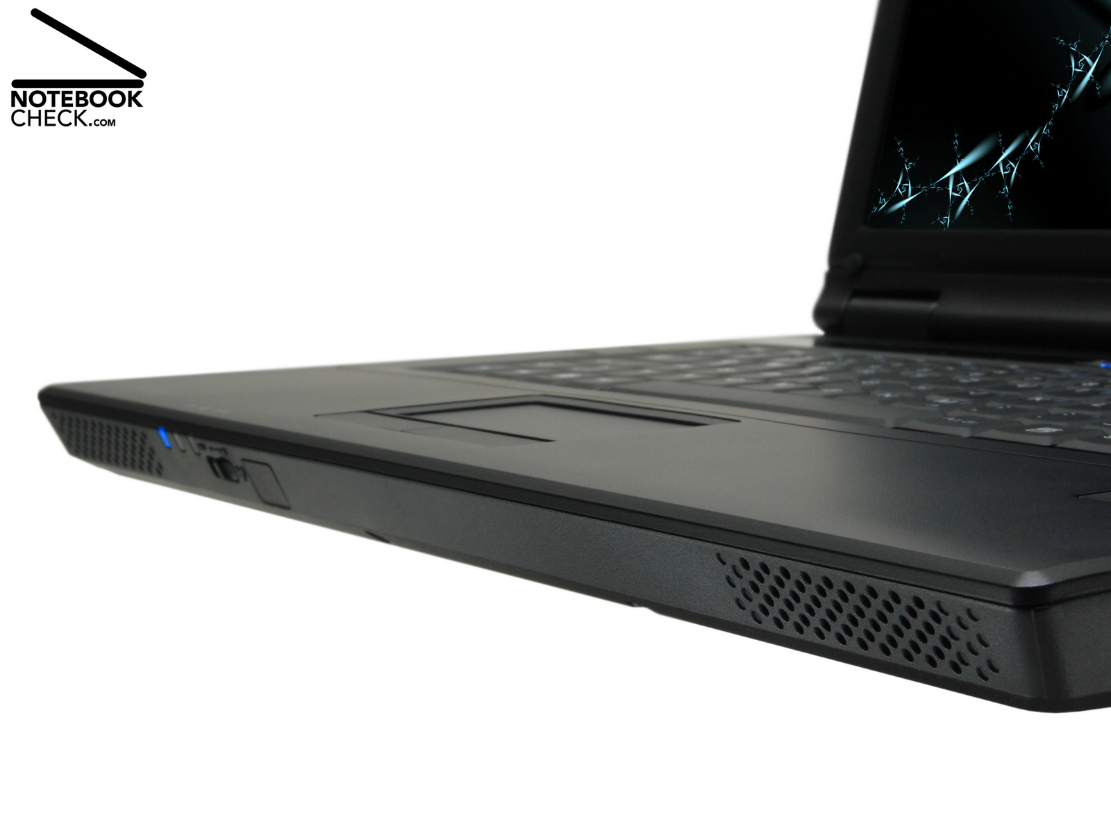 Das Gehäuse des Znote 3415W hinterlässt insgesamt einen passablen Eindruck. Jedoch könnte Steifigkeit und Stabilität der Chassisschale für ein 15,4-Zoll-Gerät gerne etwas solider ausfallen. Beim Anheben biegt sich das Gehäuse etwas durch; sowohl von der Unterseite her, als auch im Bereich der Schnellstarttasten vor dem Display ist dann ein deutliches Knarzen zu vernehmen. Dafür ist beim Znote aber hinsichtlich Verarbeitungsqualität und Passgenauigkeit der Kunststoffelemente alles im grünen Bereich.