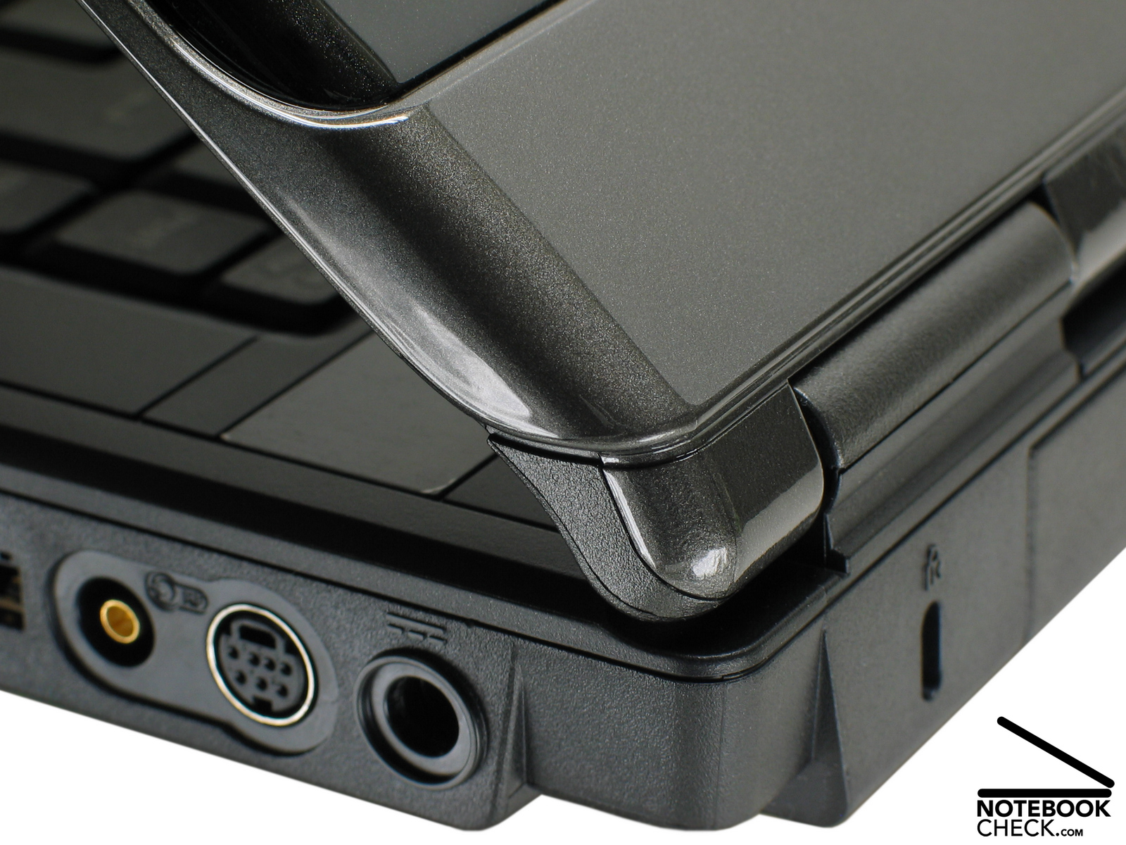 Funktional erfüllt der Glanzdeckel seine Arbeit zur vollsten Zufriedenheit. Bei der LCD-Klappe funktioniert die Zuhaltung trotz riegellosem Design tadellos. Mäßigem Druck von der Außenseite her hält er gut Stand; beim Drucktest sind keine Störungen am Display auszumachen. Die beiden straff zupackenden und selbstschließenden Scharniere halten das Display zudem in jedem Kipp- und Neigewinkel sicher fest. Obendrein schwingt die Deckelkonstruktion im Test nur wenig nach.