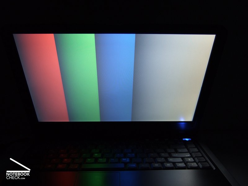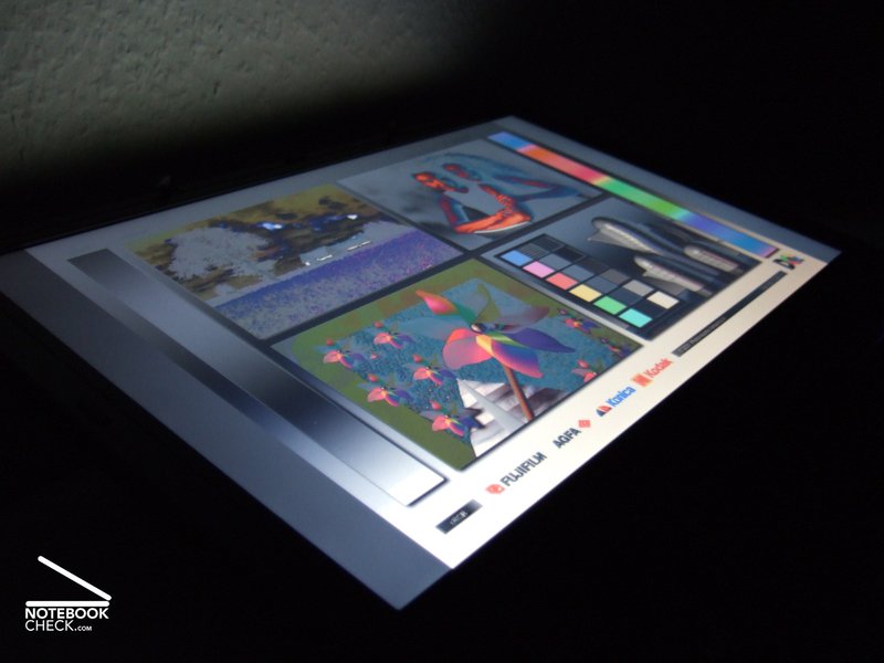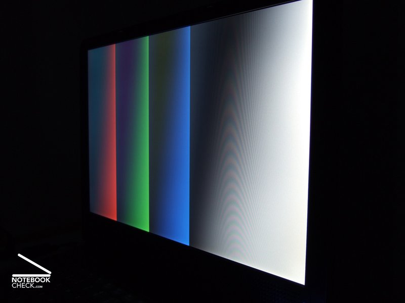 Die Blickwinkel des verbauten LCDs liegen im horizontalen Bereich leicht, im vertikalen deutlich unter dem Klassendurchschnitt. Für den Kontrast ermitteln wir unter optimalen Bedingungen mäßige 194:1, die Homogenität der Ausleuchtung ist mit 73,7 % ebenfalls unterdurchschnittlich.