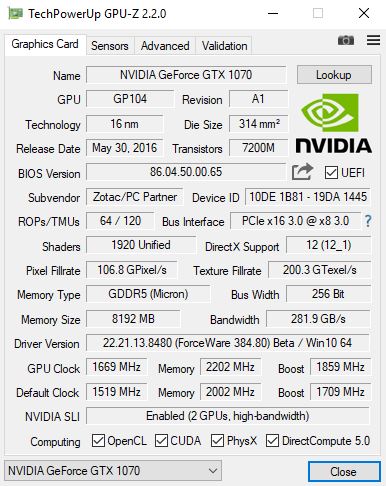 | NVIDIA GeForce GTX 1070 SLI (Desktop) | |