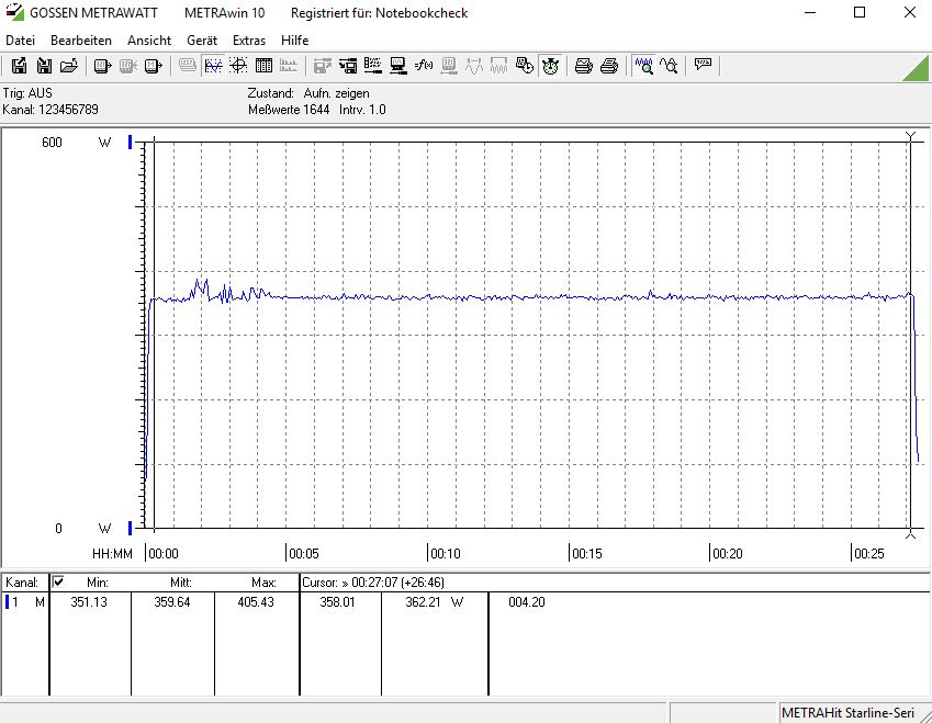 Für den Stromverbrauch beim Spielen nutzen wir The Witcher 3 im Ultra-Preset. Im Vergleich zum Stresstest ist der Verbrauch beim Spielen mit durchschnittlich 347 Watt etwas geringer. Im direkten Vergleich zur Konkurrenz zeigt sich, dass die Zotac GeForce RTX 2070 AMP Extreme mehr Energie benötigt. Beim Spielen liegt sie nur knapp hinter einer GeForce GTX 1080 Ti Founders Edition.