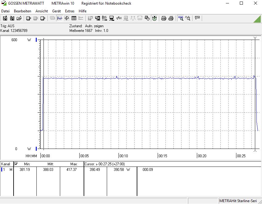 Wir haben uns auch den Stromverbrauch mit dem erhöhten Power-Target genauer angeschaut und notieren im Durchschnitt 388 Watt. Manuell lässt sich das Power-Target um 10 Prozent erhöhen, womit der Zotac GeForce RTX 2070 AMP Extreme bestenfalls 247,5 Watt zur Verfügung stehen.