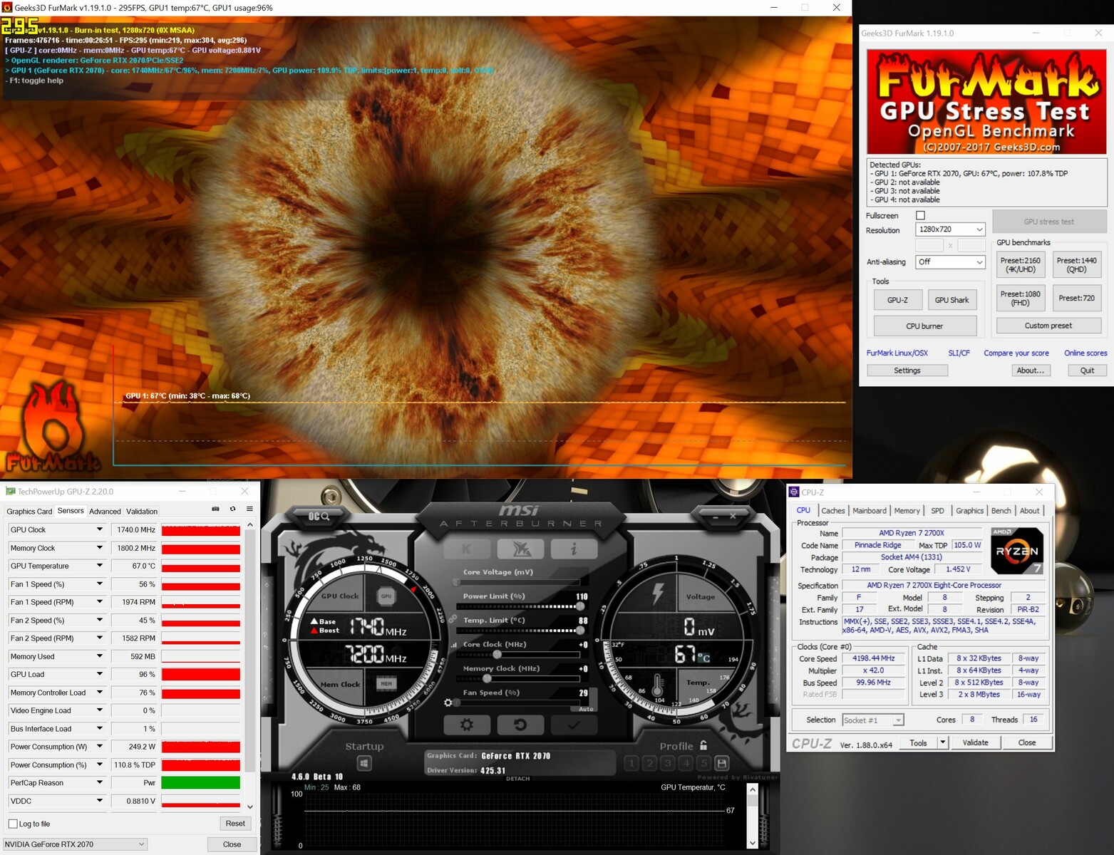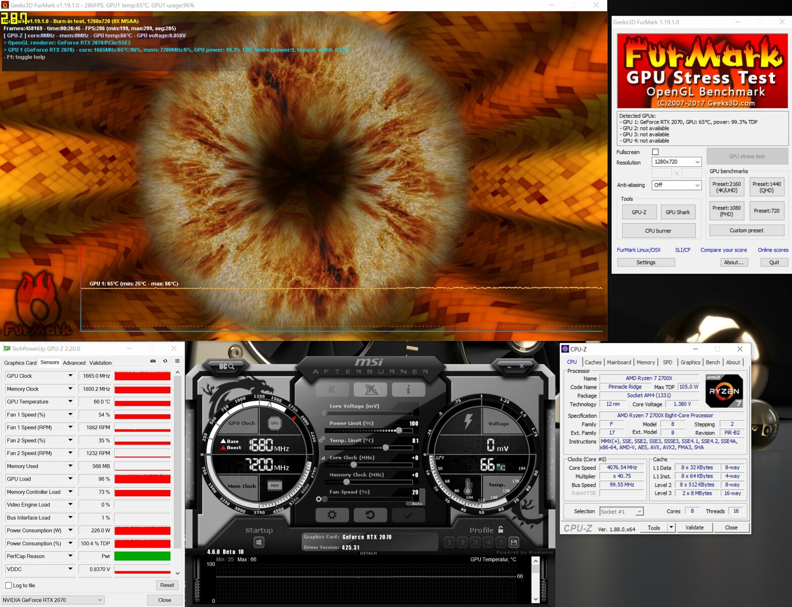 Nach einigen Tests konnten wir jedoch beim Grafikchip nur ein Plus von 80 MHz verzeichnen. Der VRAM ließ sich immerhin noch um 800 MHz übertakten. Aber auch dies ist kein Übertaktungswunder, denn der Micron-VRAM lässt sich etwas schlechter übertakten als der Samsung-VRAM, welcher auf der MSI RTX 2070 Gaming Z 8G verbaut wurde.