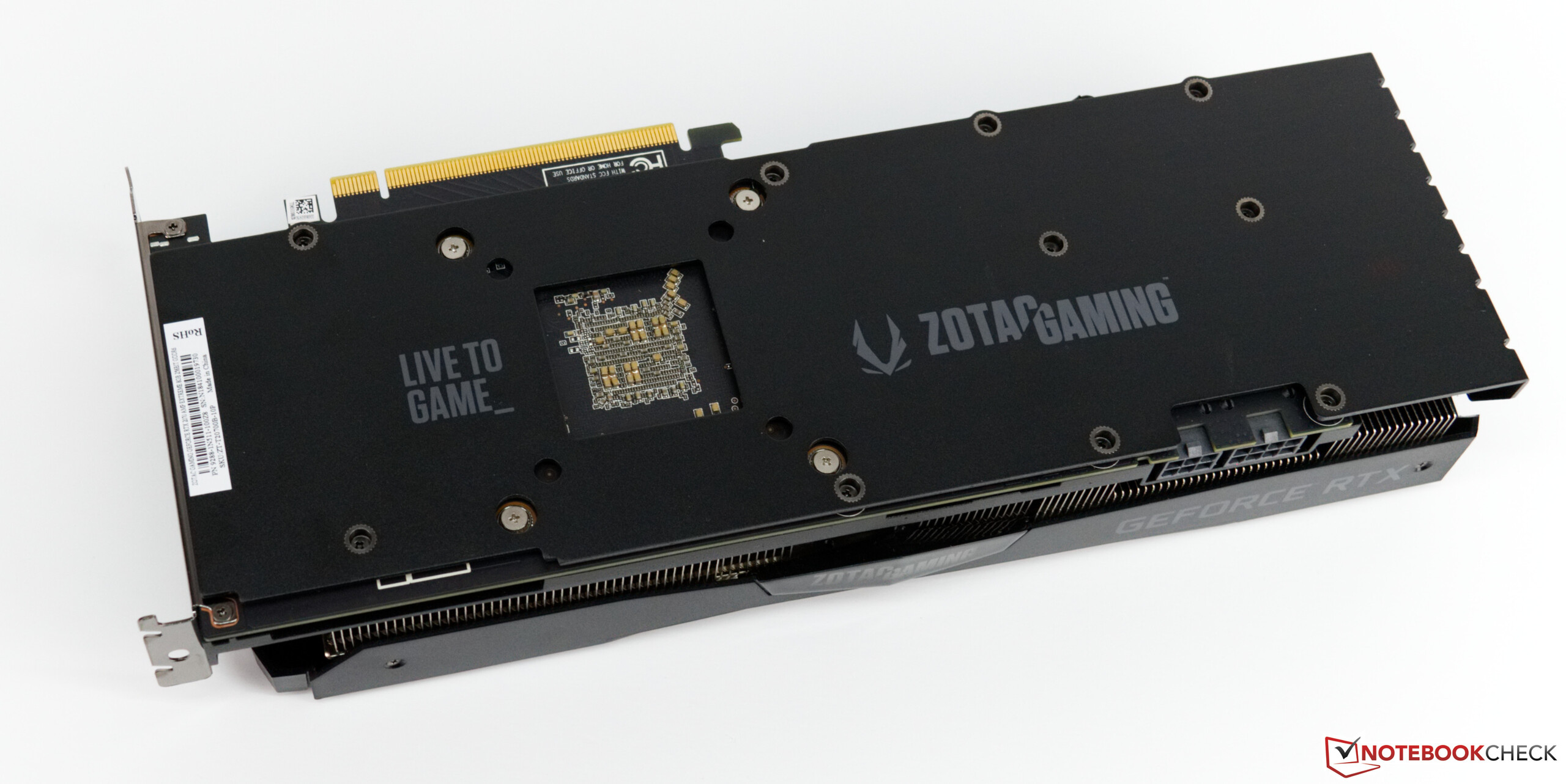 Für externe Geräte bietet die Zotac GeForce RTX 2070 AMP Extreme dreimal Displayport (1.4), einmal HDMI (2.0b) und einen USB-Type-C-Anschluss für VR-Geräte. Den Strombedarf der Grafikkarte übernehmen intern neben dem PCI-E-Steckplatz noch zwei zusätzliche Stromanschlüssen (6 + 8 Pin).