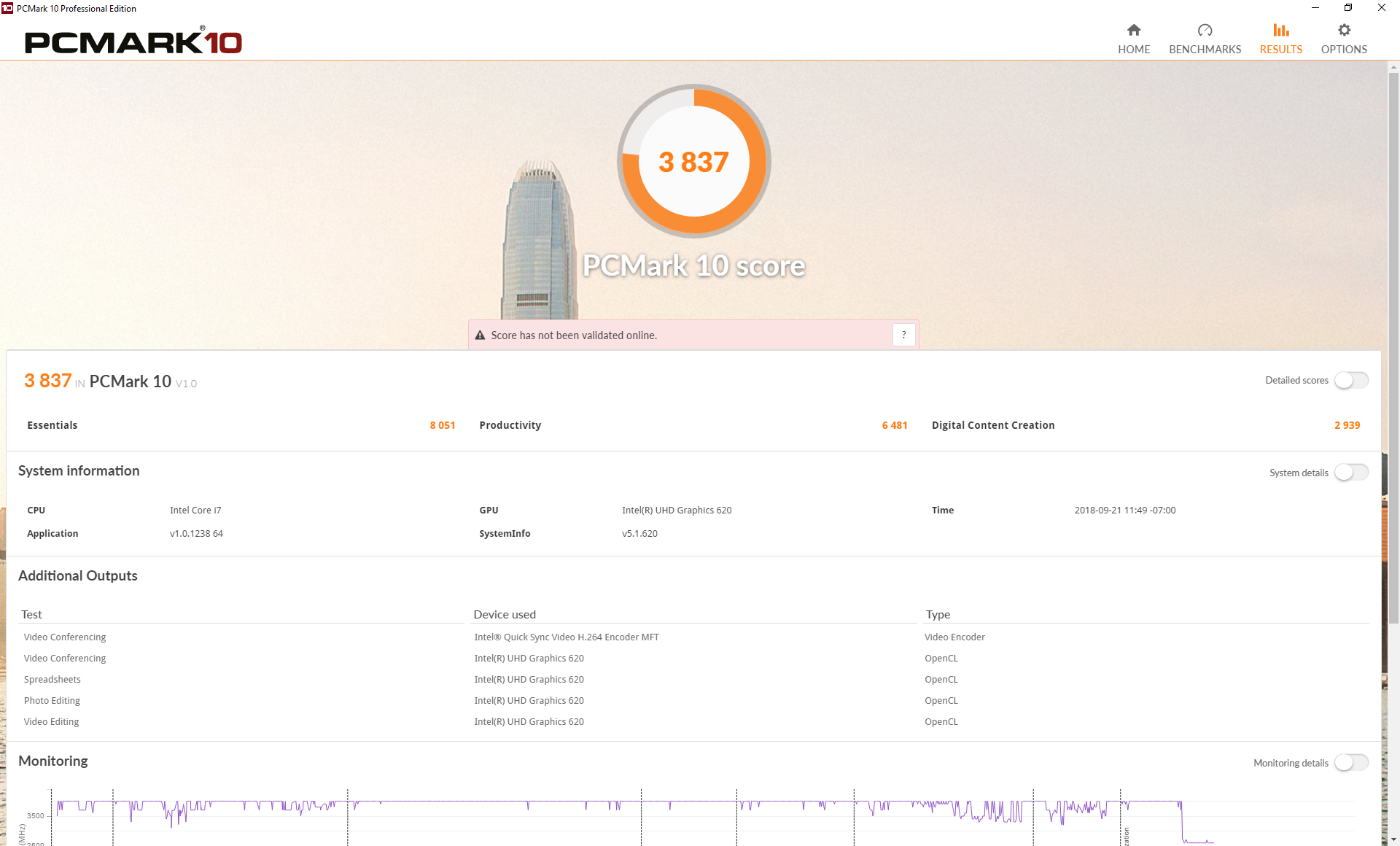 | Durchschnittliche Intel Core i7-8550U, Intel UHD Graphics 620 (2629 - 4072, n=31) | |