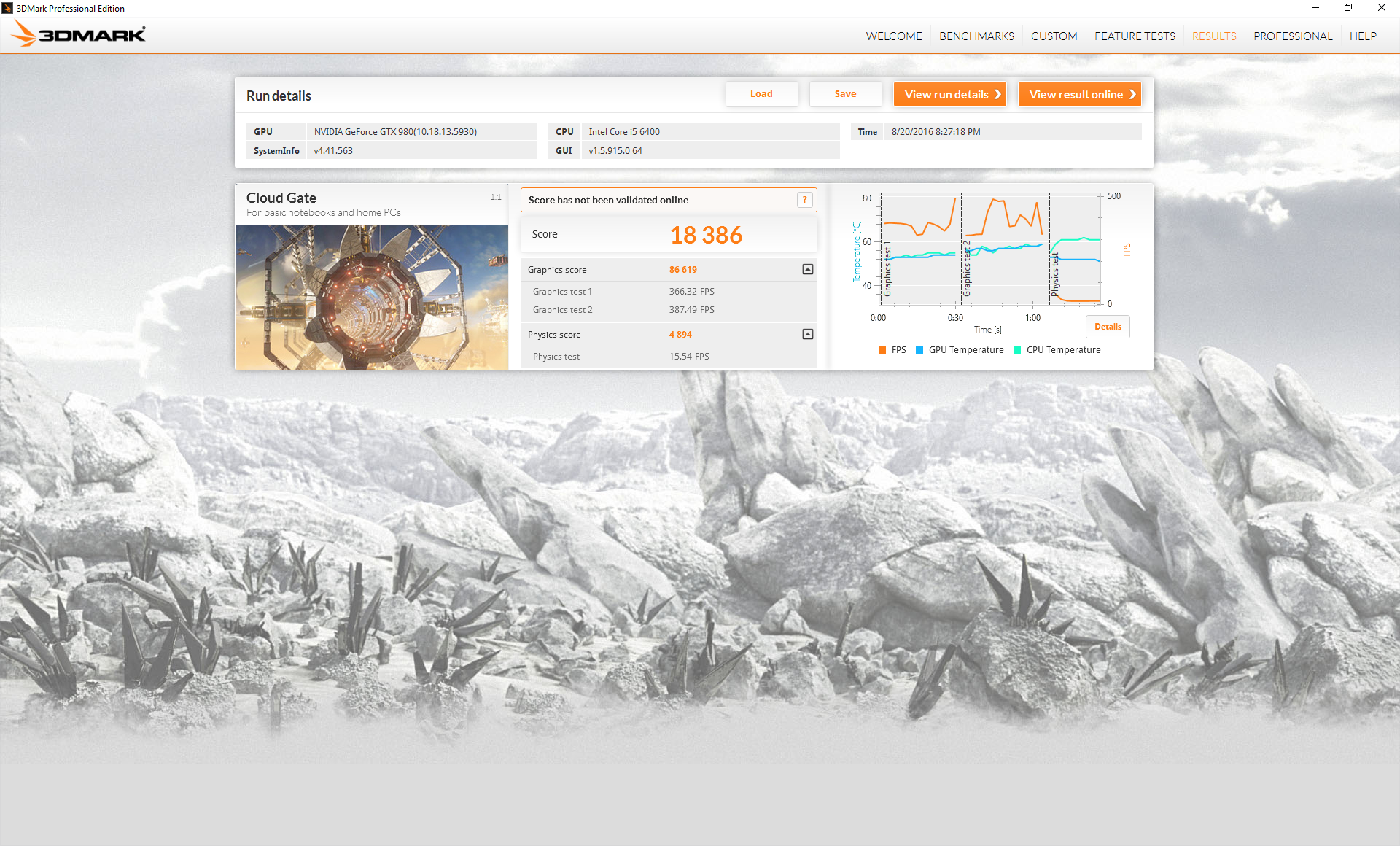 | 3DMark Cloud Gate Standard Score | 18386 Punkte | |