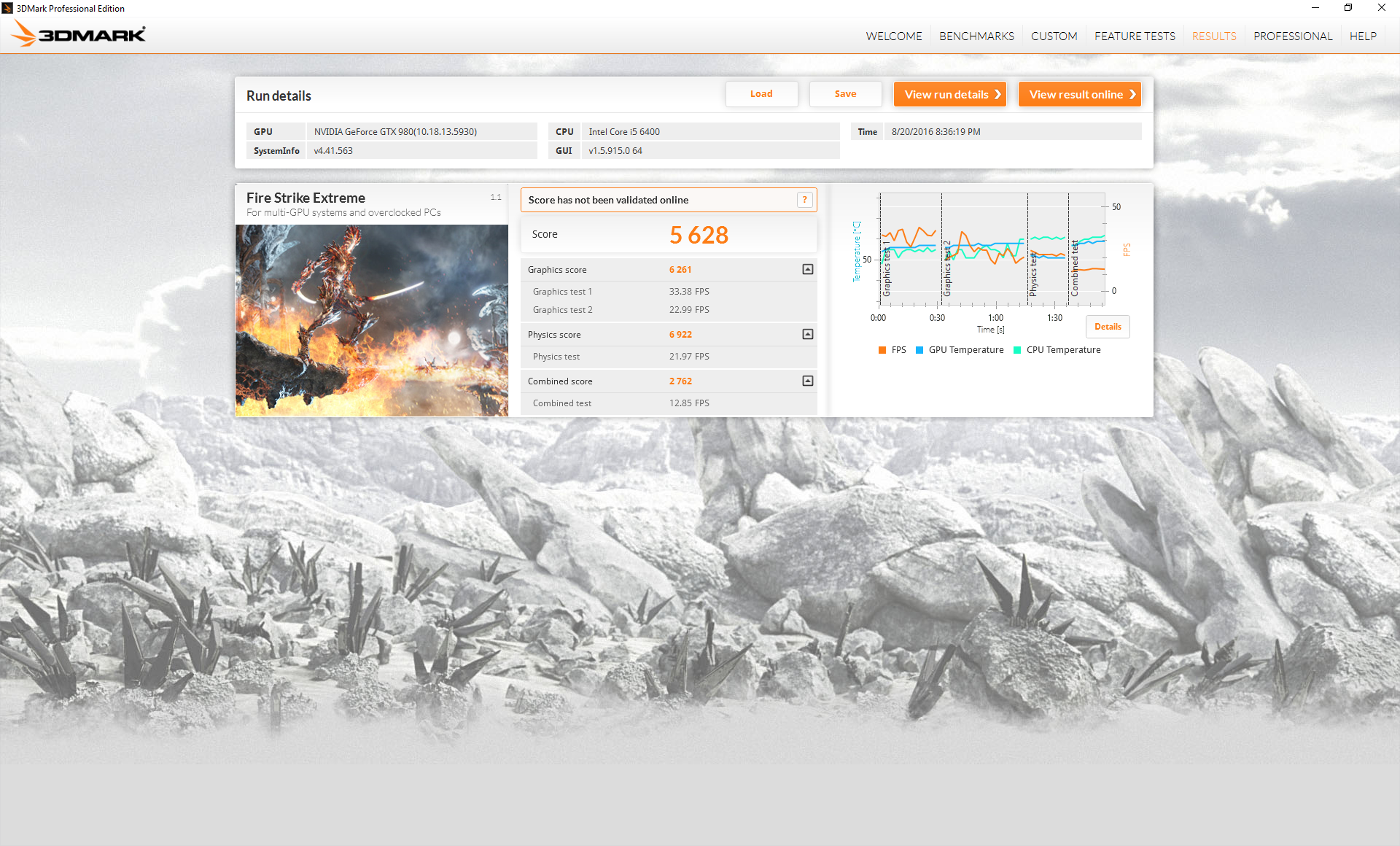 | 3DMark Fire Strike Extreme Score | 5628 Punkte | |
