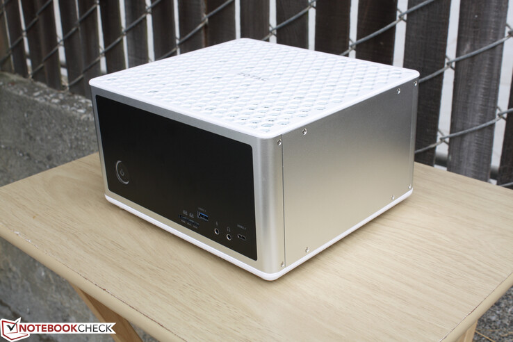 In puncto Größe und Gewicht ist das EN980 deutlich größer als das SN970 und, wenn es nur etwas höher wäre, würde es einer idealen Würfelform noch näher kommen. Einigen Usern mag das Zotac im Vergleich zu schlankeren und farbenfroheren Mini-PCs wie jenen der Asus ROG GR Serie etwas altbacken erscheinen. Mit zirka 3,9 kg ist das System für seine Größe ziemlich schwer. Es wiegt zirka gleich viel wie 17,3-Zoll Gaming-Notebooks wie das jüngste Asus G701VO. Das große Gewicht kann auf die große Flüssigkühllösung zurückgeführt werden, die auch im Asus G752VY verwendet wird, wo sie auch für das immense Gewicht des Notebooks verantwortlich ist.