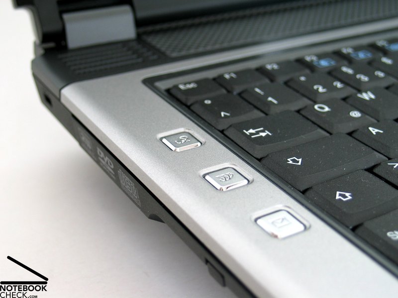 Die Zusatztasten links und rechts neben der Tastatur sind einerseits optisch nicht besonders gelungen und waren andererseits, vermutlich aufgrund fehlender installierter Software, nicht aktiviert. Ausnahme: Taste zum Öffnen des Webbrowsers.