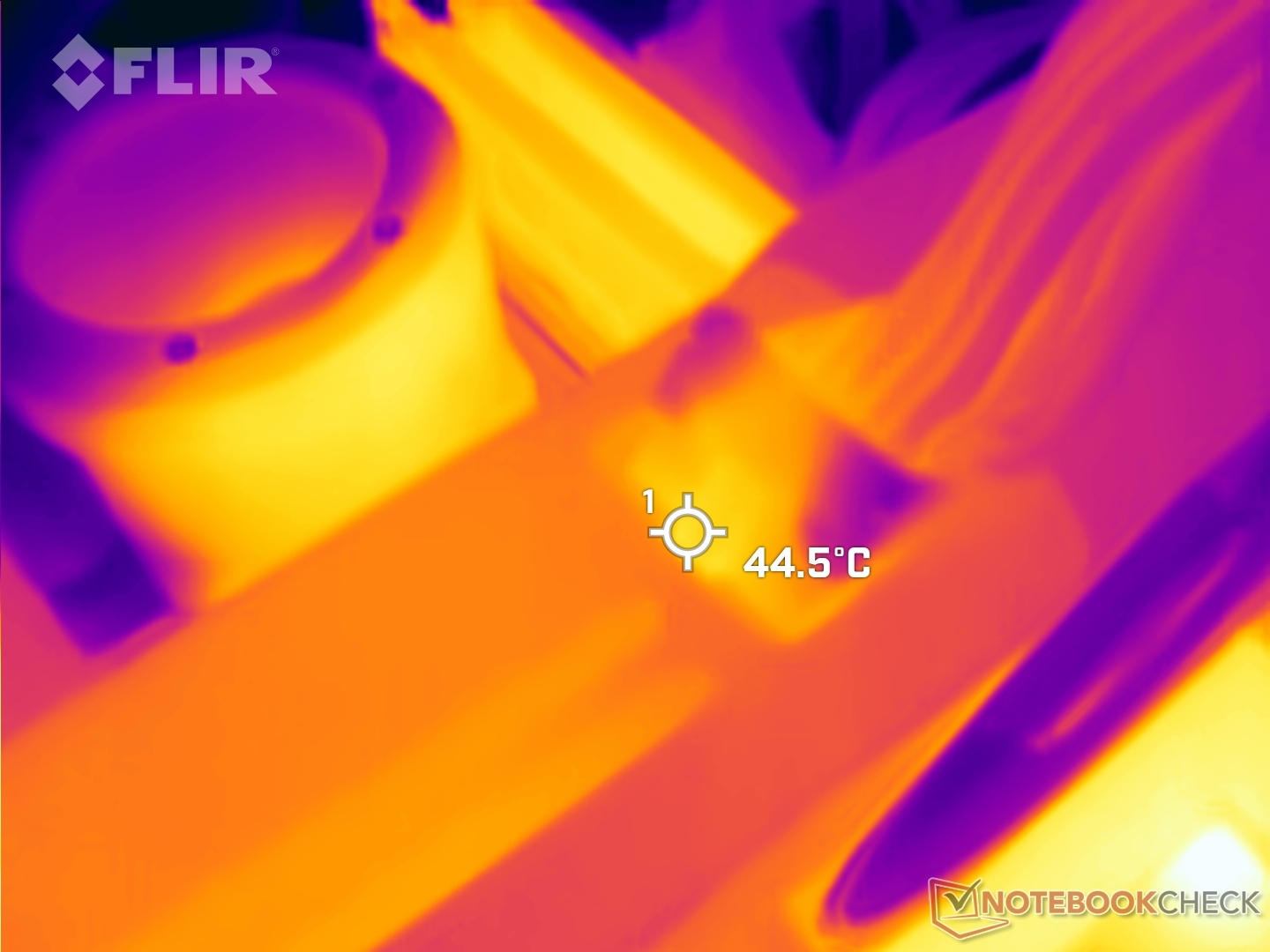 Die Oberflächentemperaturen bleiben unter Umgebungsbedingungen von 23 °C weitgehend überschaubar. Wir haben 36 °C auf der Vorderseite und fast 46 °C auf der Rückseite der Karte gemessen.