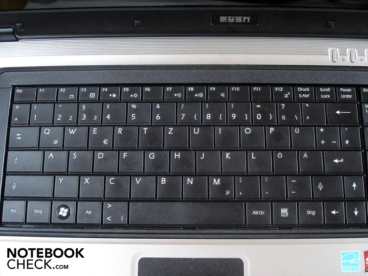 Vieltipper dürften mit der Tastatur des mySN MG7.c auf Dauer grundsätzlich nicht glücklich werden. Das liegt nicht zuletzt am relativ kurzen Abwärtshub und dem mäßigen Druckpunkt respektive Anschlag. Um die Stabilität ist es ebenfalls nicht allzu gut bestellt, gerade zur rechten Seite hin lässt sich auf Höhe des Nummernblocks ein deutliches Nachgeben feststellen. Bei sehr kräftigem Druck kann es sogar zu einem Knarzen kommen. Apropos Akustik: Das laute und klapprige Tastengeräusch wirkt arg billig.