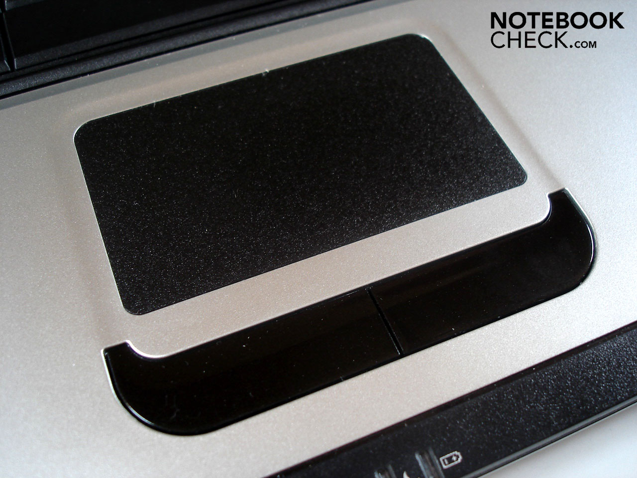 Kommen wir zum schwarzen und minimal abgesenkten Touchpad, das in seinen Dimensionen etwas größer sein könnte. Die Präzision lässt grundsätzlich kaum zu wünschen übrig, bei fettigen oder feuchten Fingern hatten wir allerdings teilweise mit Aussetzern und Geschwindigkeitseinbrüchen zu kämpfen. Die leicht angeraute Oberfläche ist ein gelungener Kompromiss aus Rückmeldung und Gleitfähigkeit. Damit das Touchpad in Spielen nicht unabsichtlich ausgelöst wird, sollte man von der Deaktivierungsfunktion Gebrauch machen (Fn + F3). Die beiden einzelnen Touchpadtasten erweisen sich bei Betätigung als etwas lautstark, dafür gehen sie vom Auslöseverhalten in Ordnung.